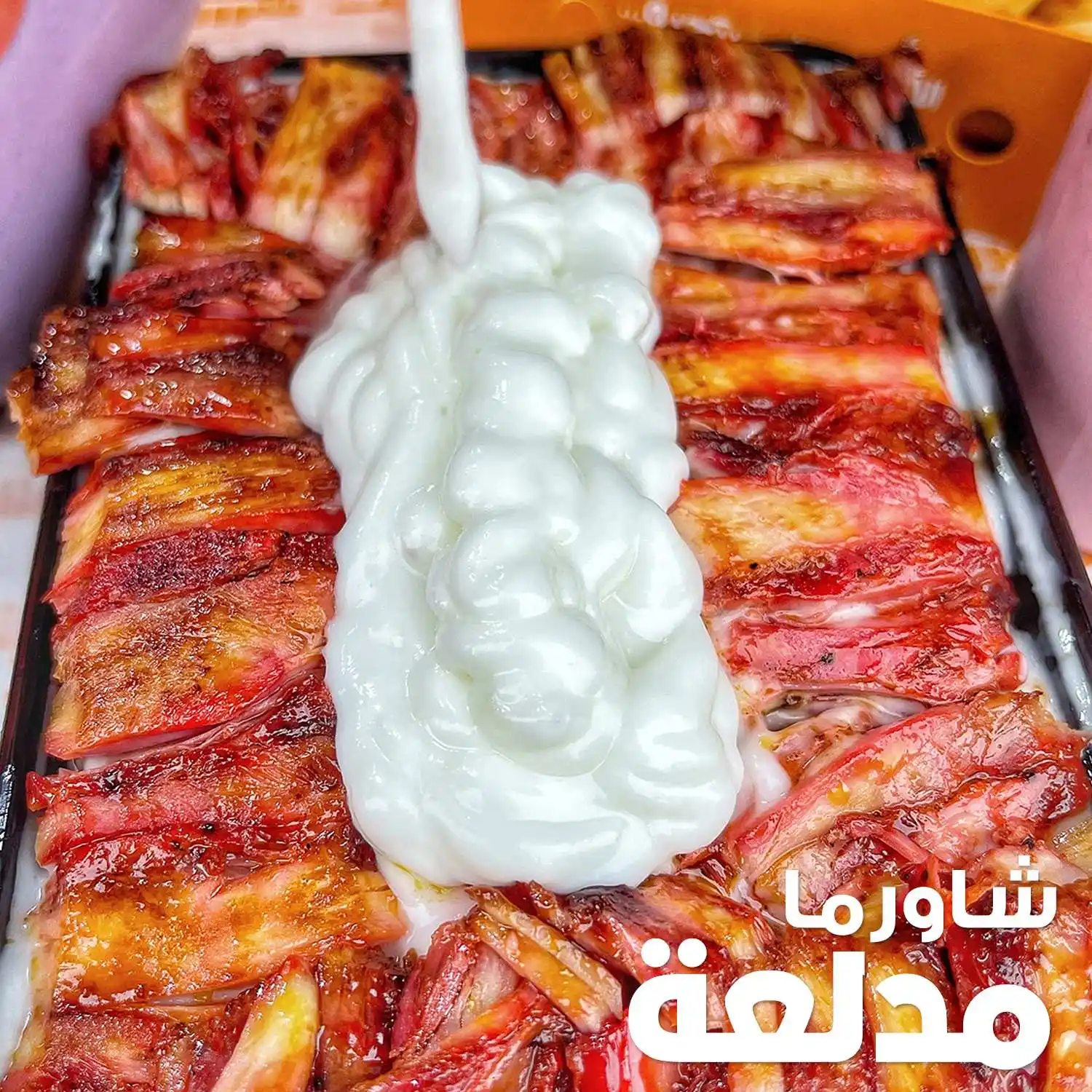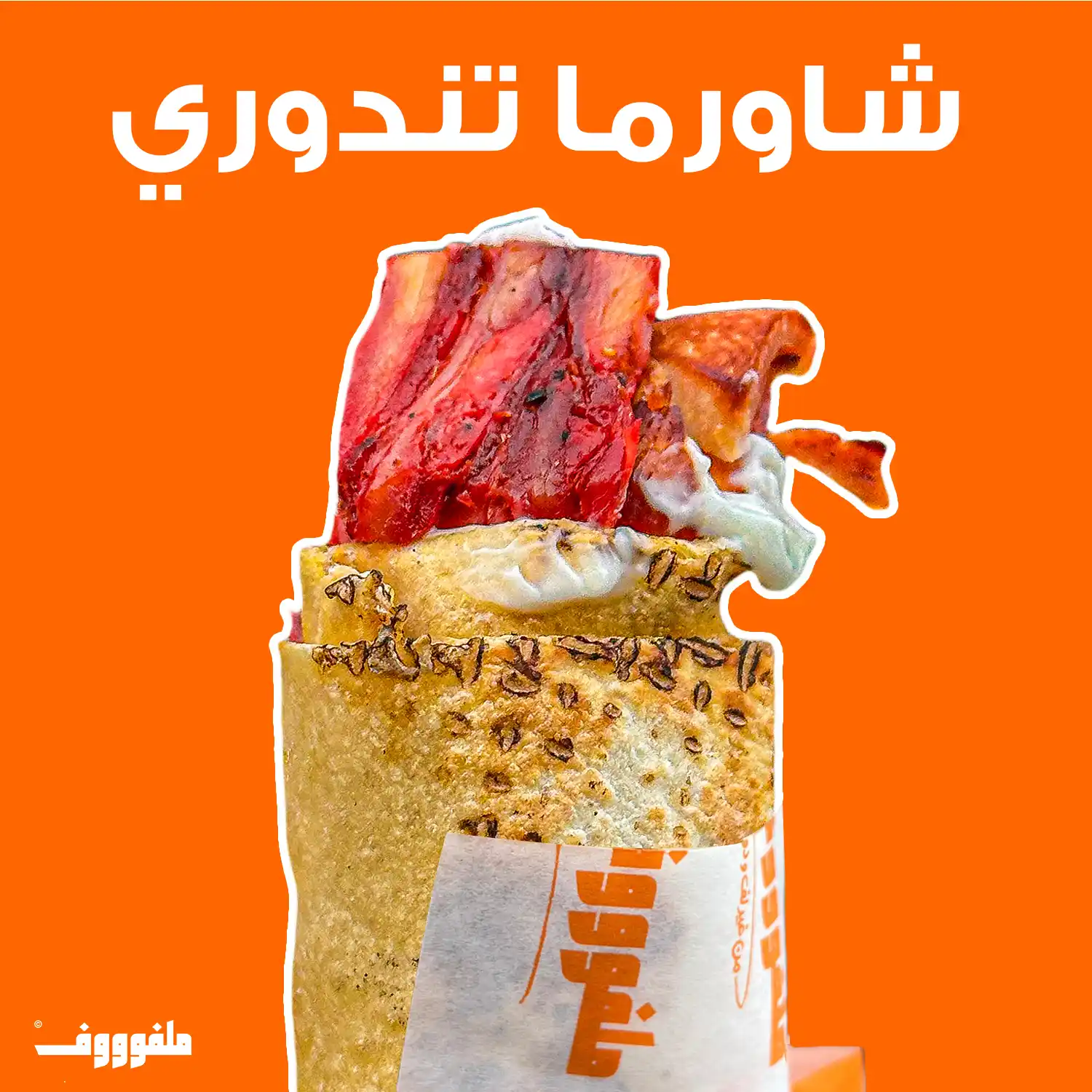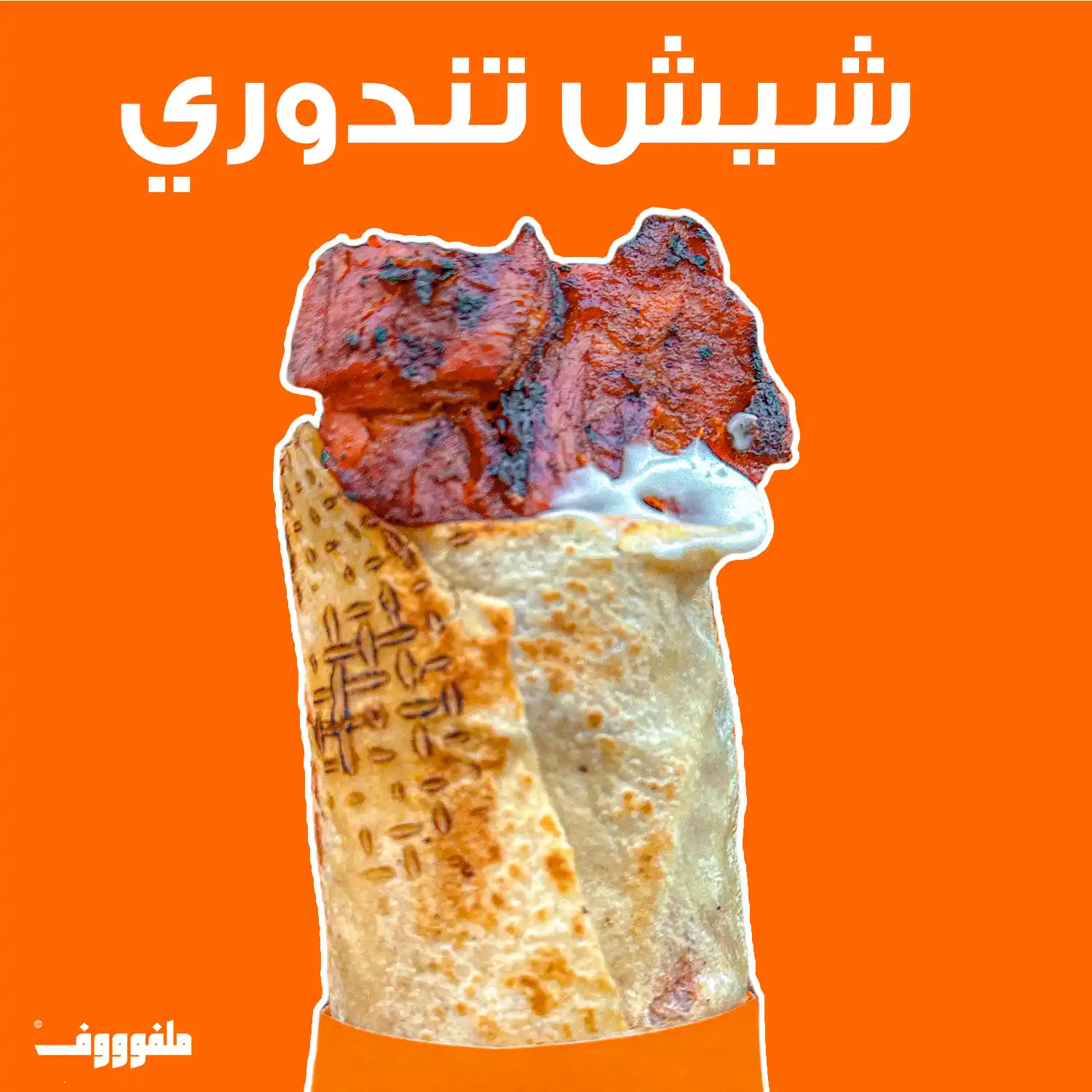 شاورما تندوري - بطاطس - شيش تندوري - هالبينو - جبنة موزاريلا - تومية حار
