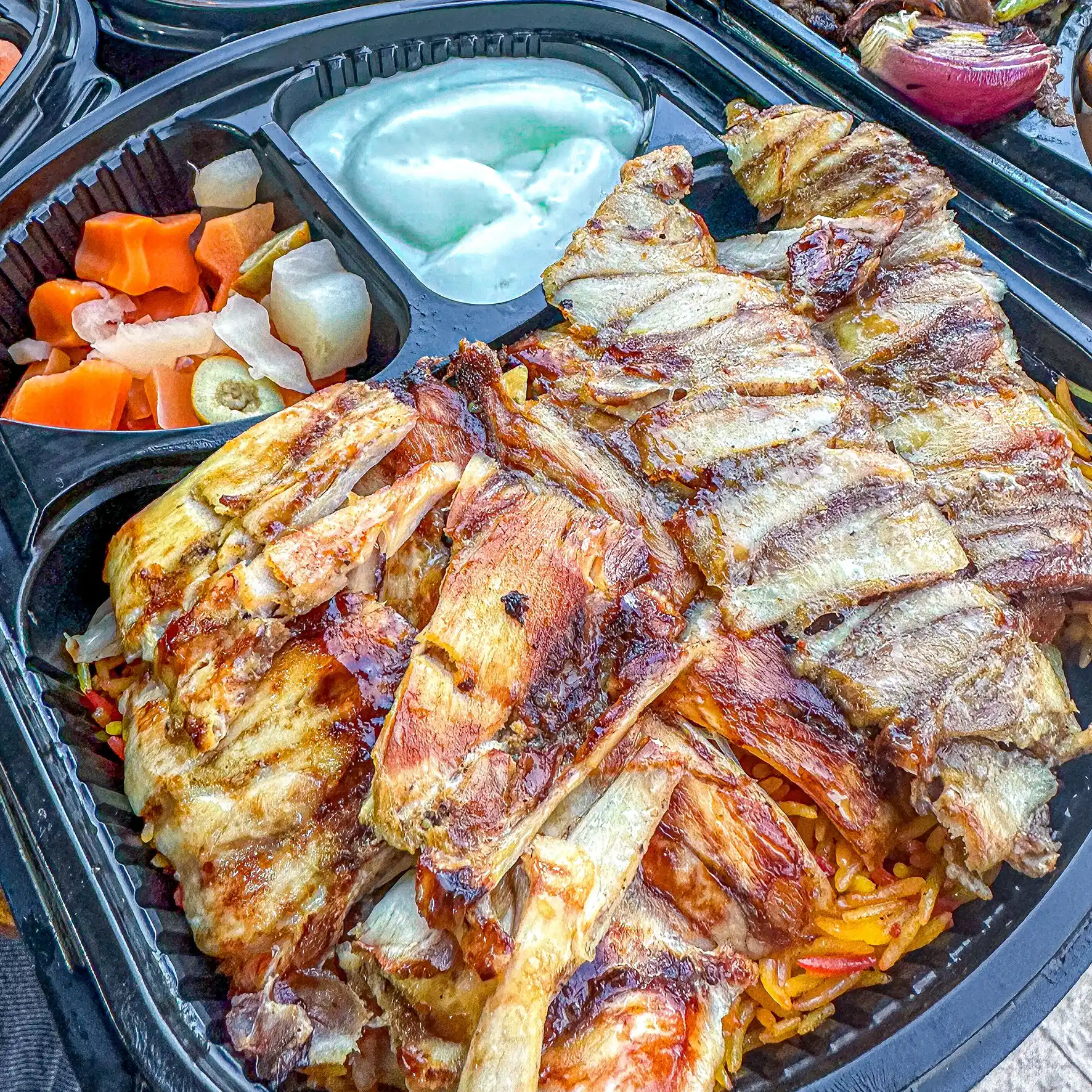 6ق تقدم مع أرز + عيش + مخلل + صوص